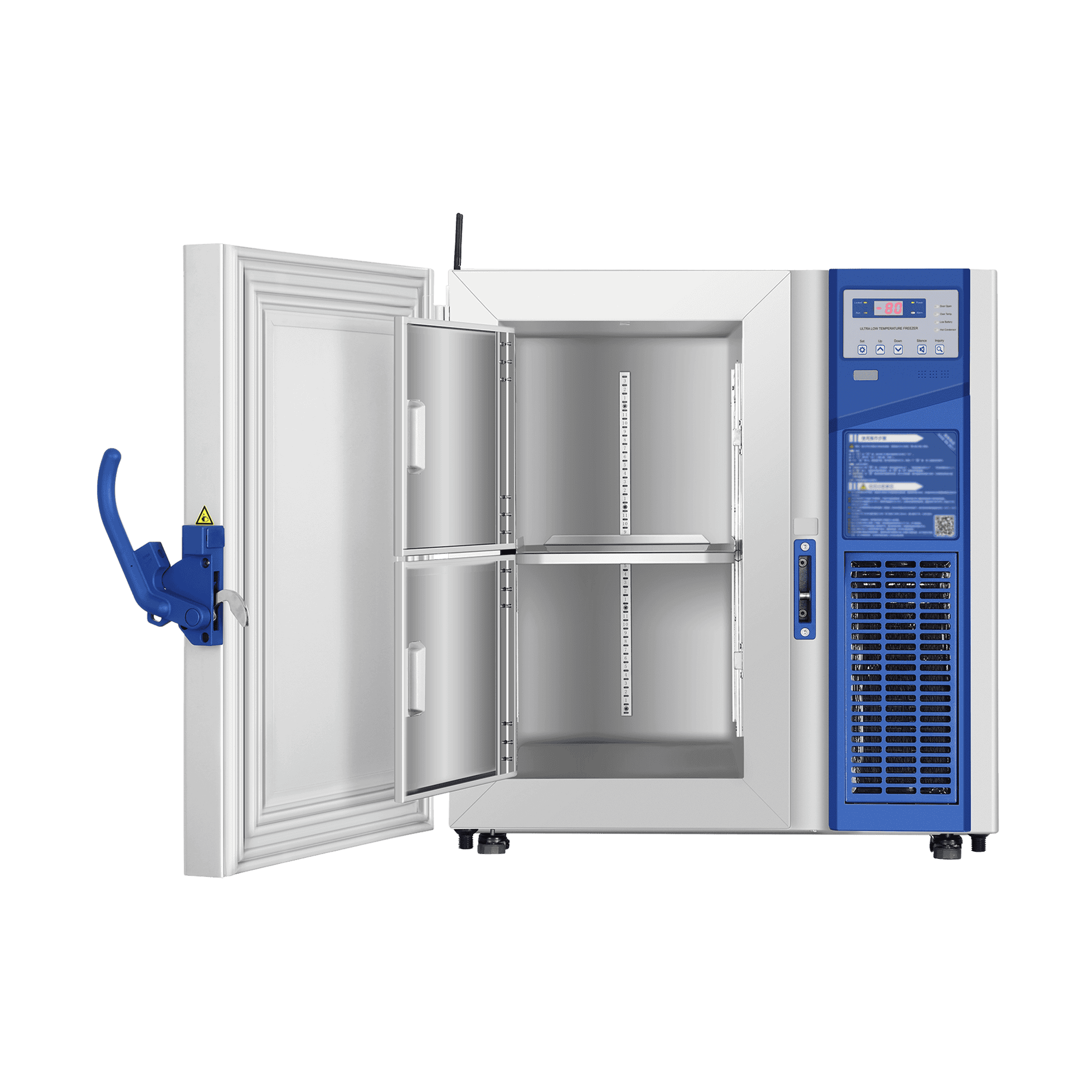 Energy-saving and environmentally friendly. Temperature range -40~-86ยบC. Multiple Alarms and remote alarm contact. 1 inner door. Holds 30 two-inch Cryo boxes or 3000 Cryo tubes.