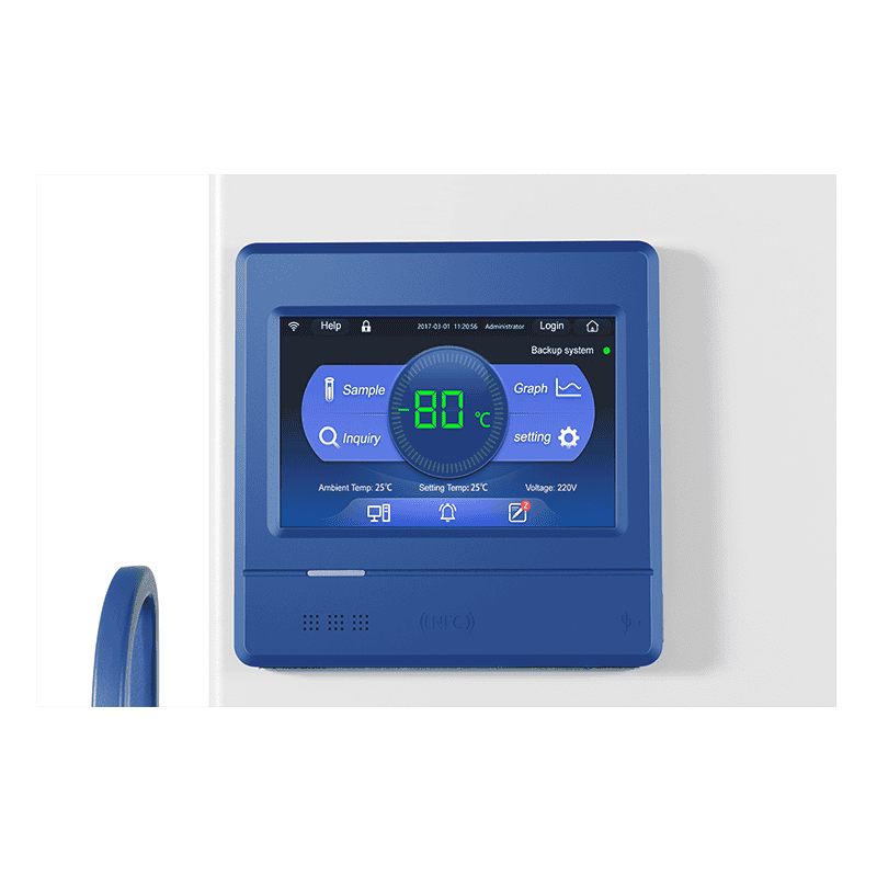 Intelligent frequency conversion freezer with adaptive control, Temperature range -40ยบ~-86ยบC. Multiple Alarms including remote alarm contact.4 inner doors, holds 700 two-inch Cryoboxes or 70000 Cryo tubes.