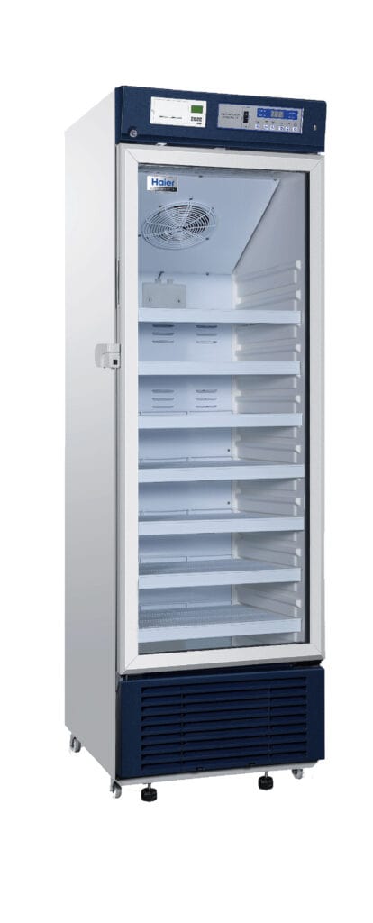 Forced Air cooling fridge. Microprocessor controller with LED display and multiple alarms. Access port as standard. 5 Plastic-coated Steel-wire shelves.
