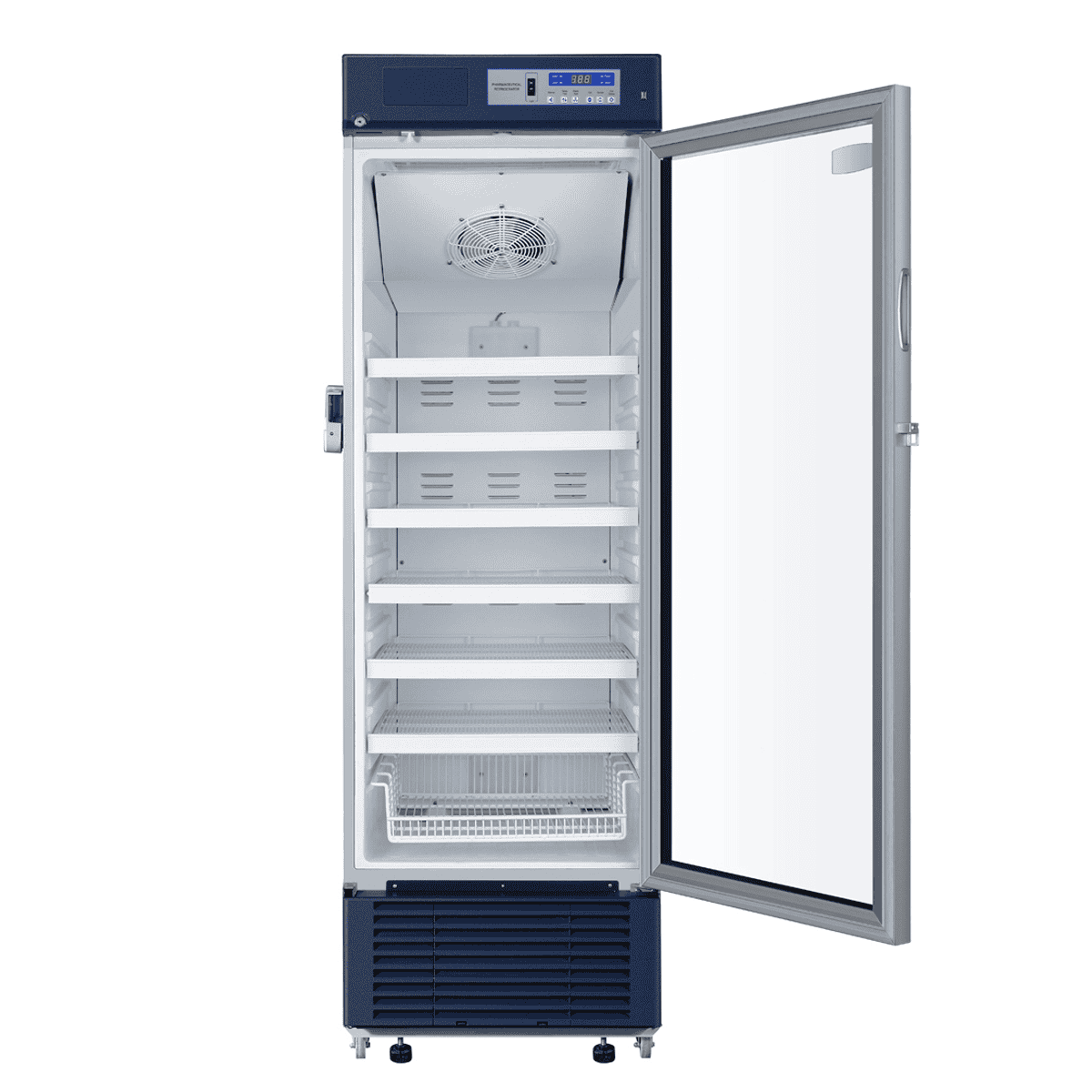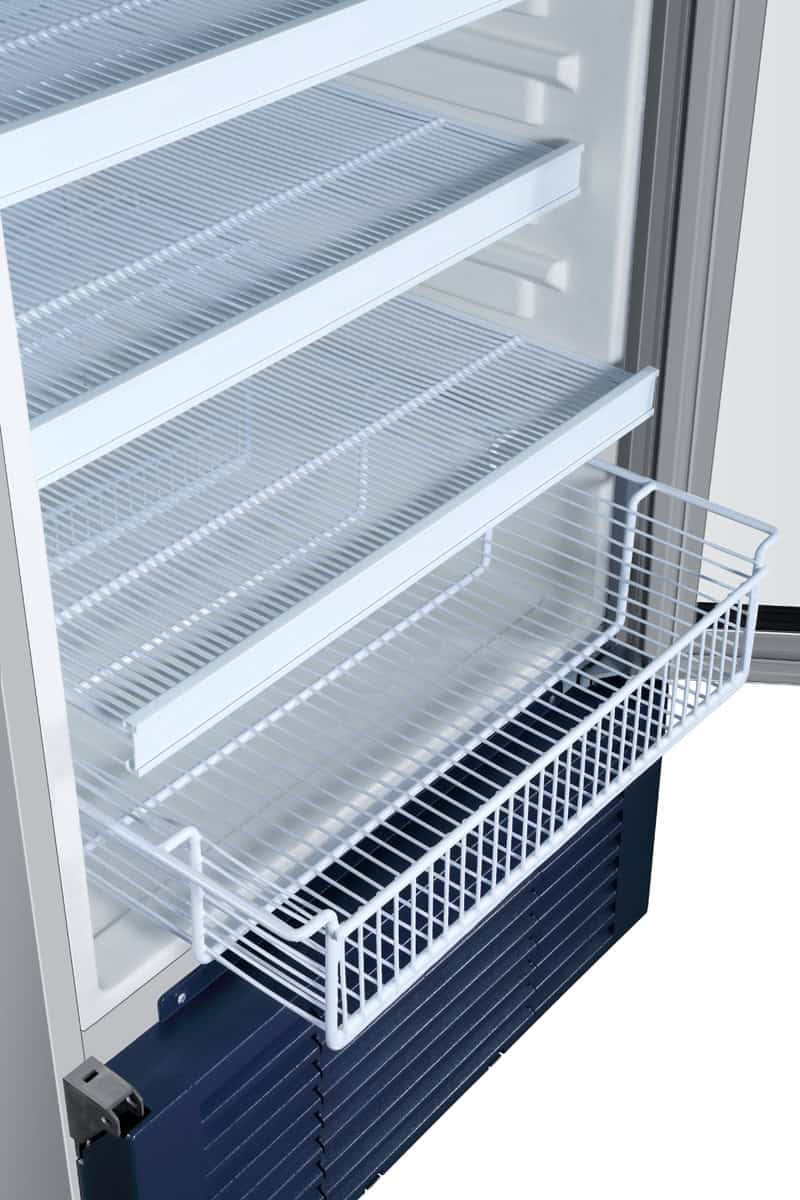 Forced Air cooling fridge. Microprocessor controller with LED display and multiple alarms. Access port as standard. 6 Plastic-coated Steel-wire shelves and 1 basket. Exterior Dimensions W665*D710*H1965(mm). 10amp GPO.
